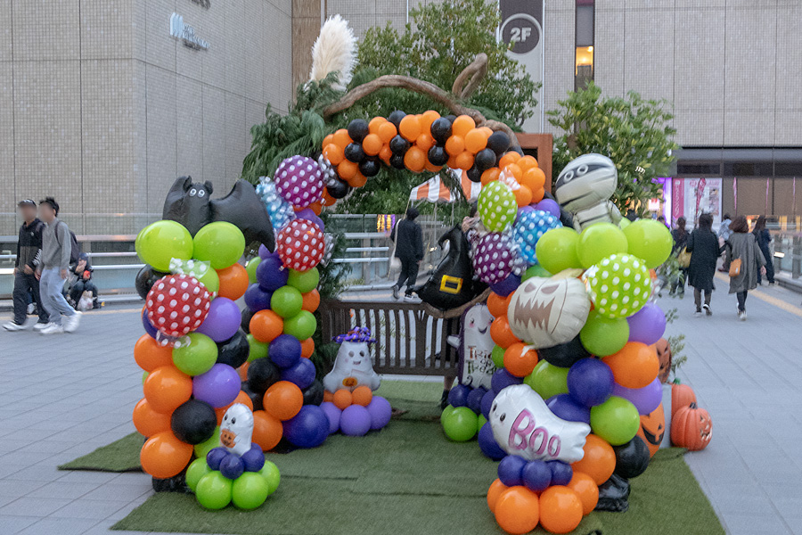 東口ヤマダデンキの前に多数のキッチンカーが並んでいる。