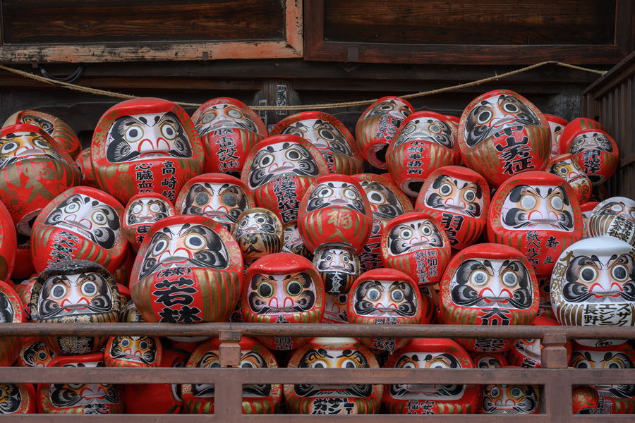 たくさんのダルマが祀られている。有名人の名前も見える。