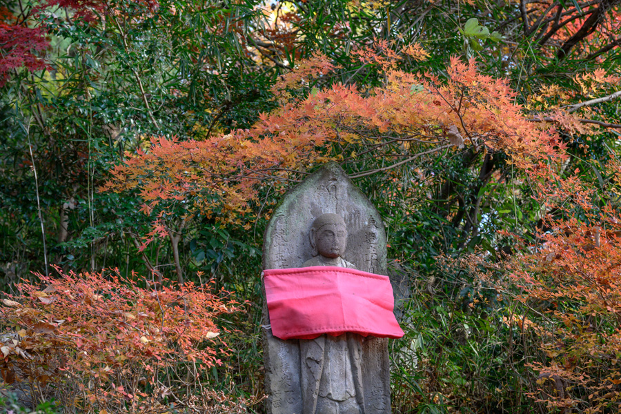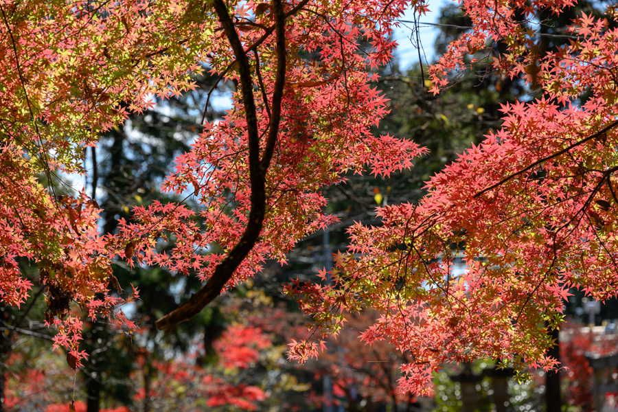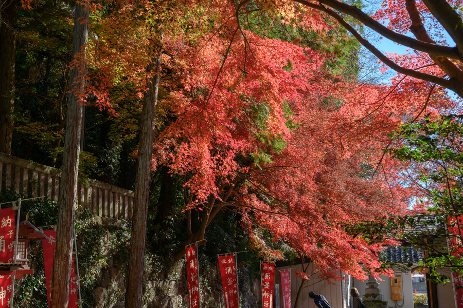 涌釜(わっかま)神社。モミジがお出迎えだ。