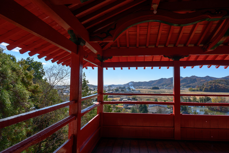 鐘楼である。朱塗りの柱で囲まれ歴史のあるもののようだ。