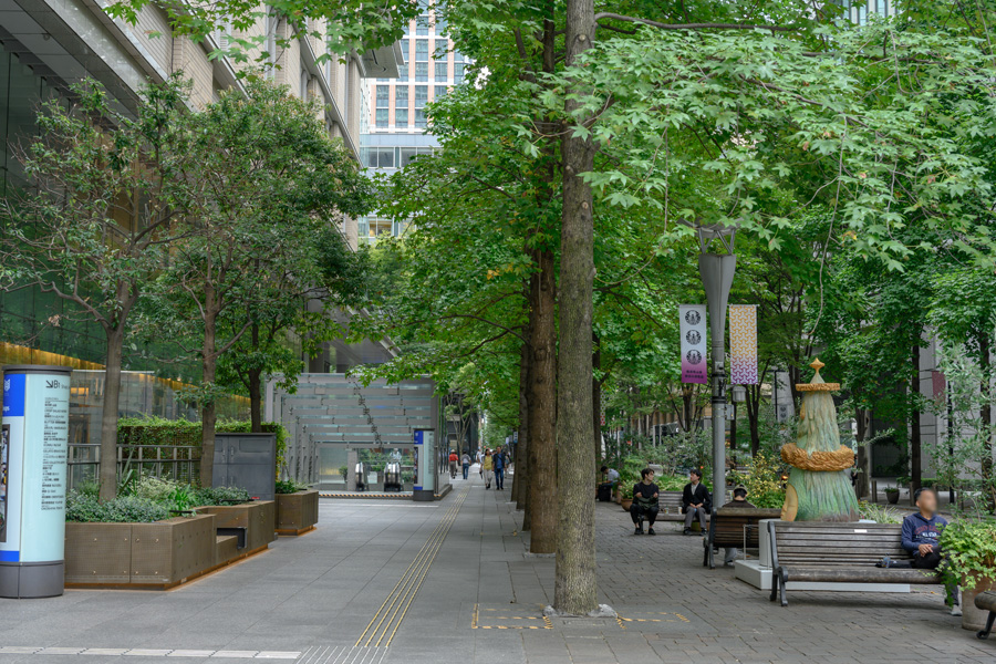 歩道が広く、ベンチも整備され、並木もきれいだ。