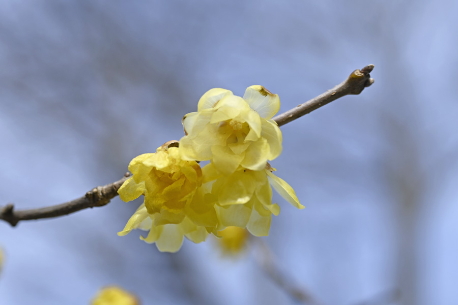 蝋梅である。しっかり咲いている。マクロで撮影。