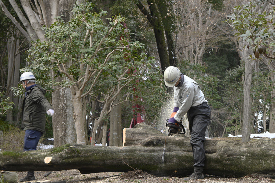 木の伐採をしていた。これだけ広い公園を管理するのも大変だ。