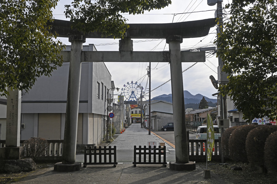 この神社の境内からは鳥居とあの観覧車が一緒に見られる。