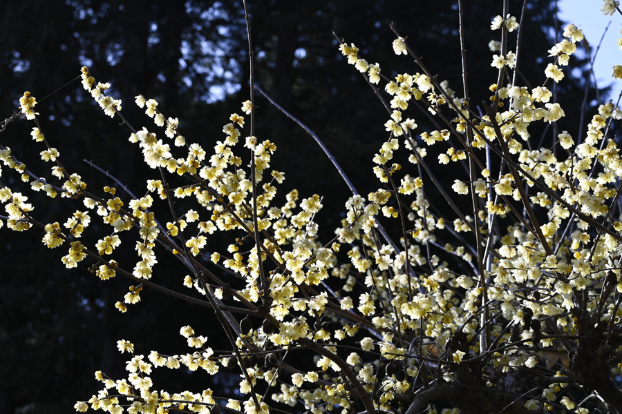 観音堂に行く途中、階段の両脇に蝋梅が咲いている。