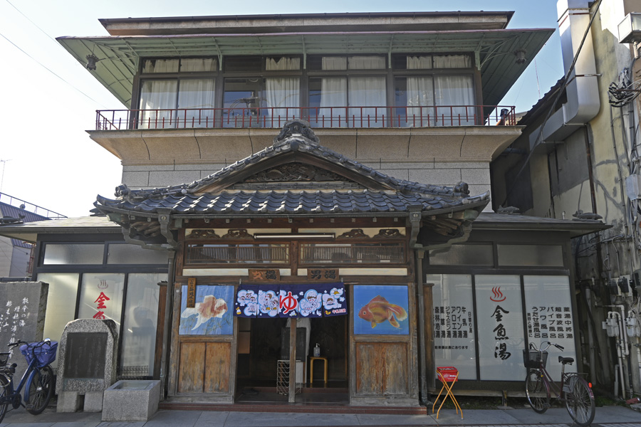 町の銭湯金魚湯だ。未だにやっている銭湯があるのもうれしいものだ。