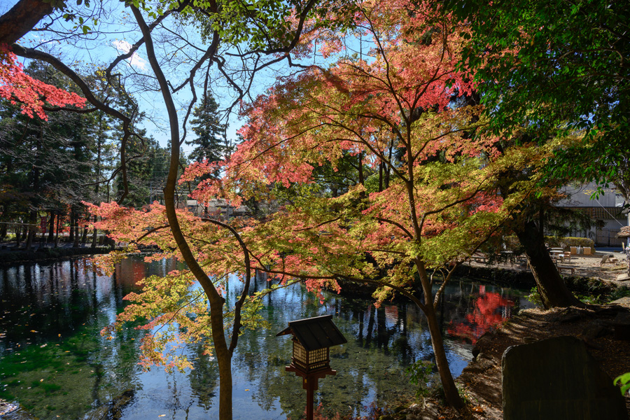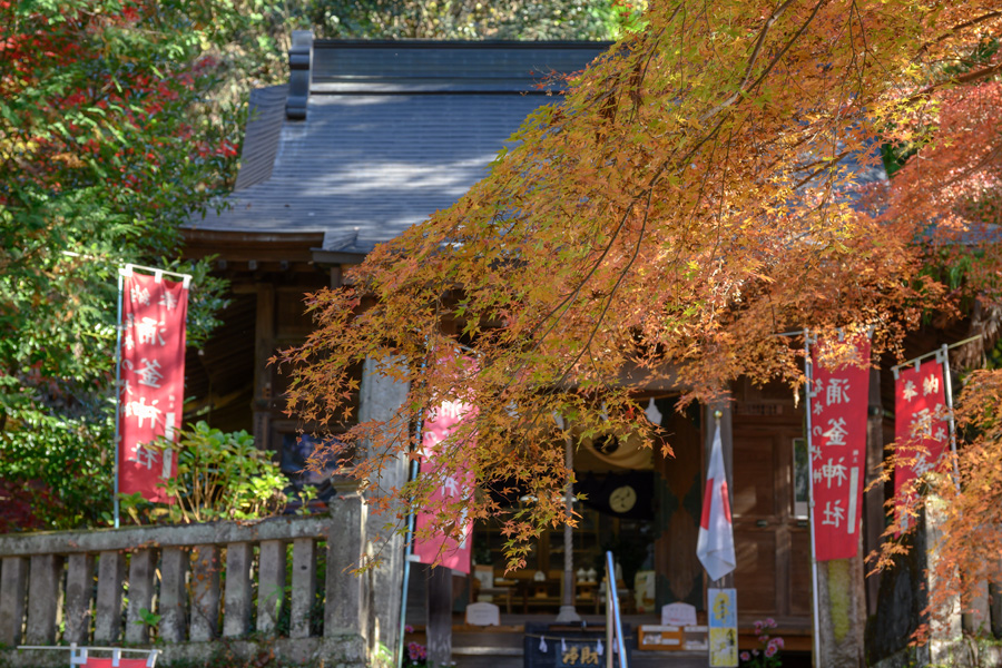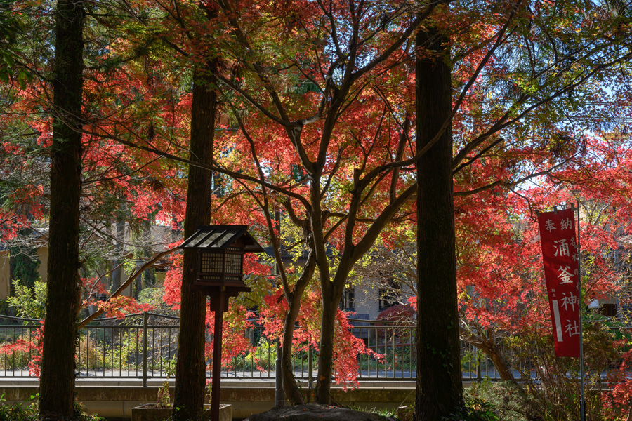 涌釜(わっかま)神社。モミジがお出迎えだ。
