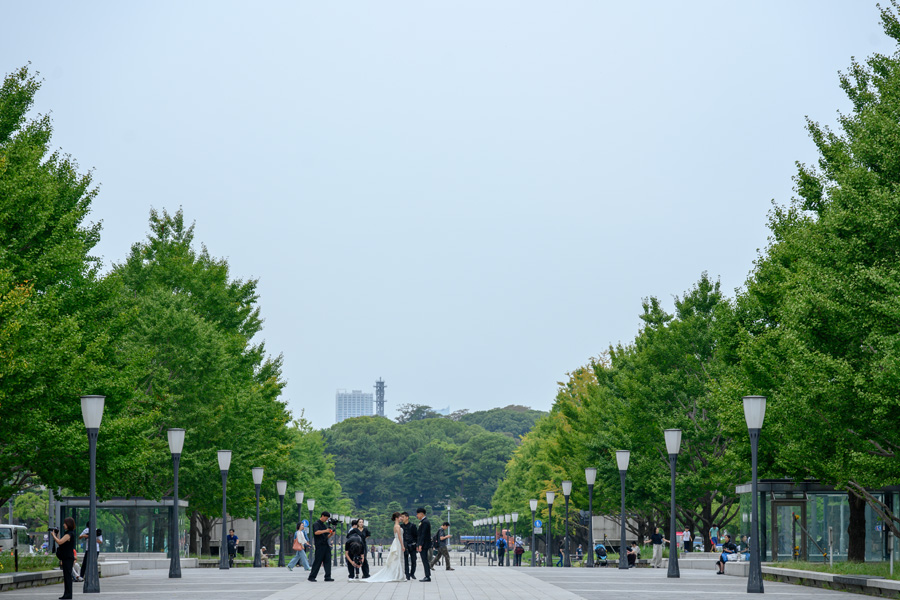 歩道が広く、ベンチも整備され、並木もきれいだ。