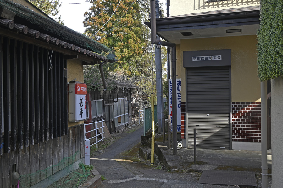 こんな細い路地もまだ残っている。ちょっと曲がった路地が好きだ。