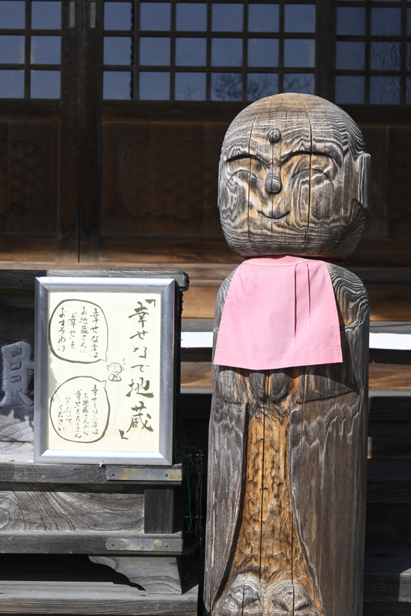 本堂前に木製の地蔵があった。木のぬくもりが感じられる。